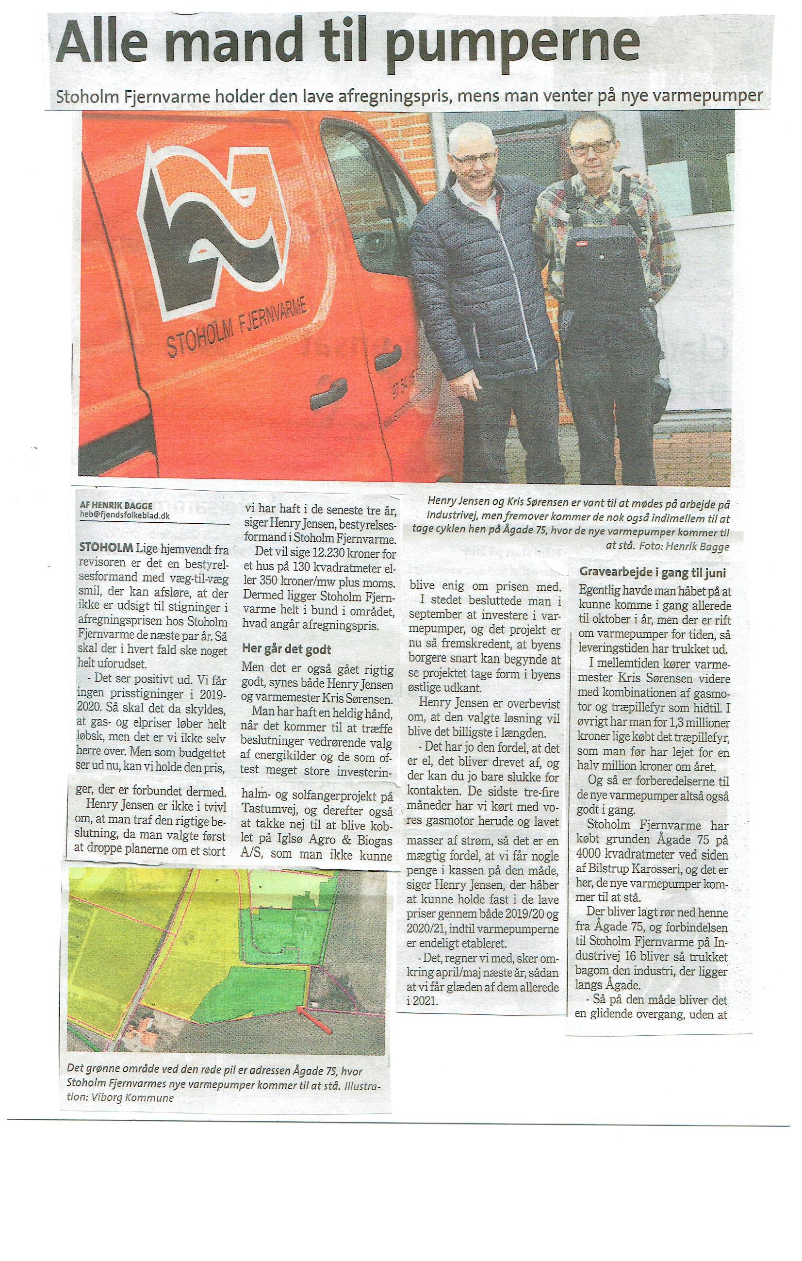 - Det ser positivt ud. Vi får ingen prisstigninger i 2019-2020. Så skal det da skyldes, at gas- og elpriser løber helt løbsk, men det er vi ikke selv herre over. Men som budgettet ser ud nu, kan vi holde den pris, vi har haft i de seneste tre år, siger Henry Jensen, bestyrelsesformand i Stoholm Fjernvarme.